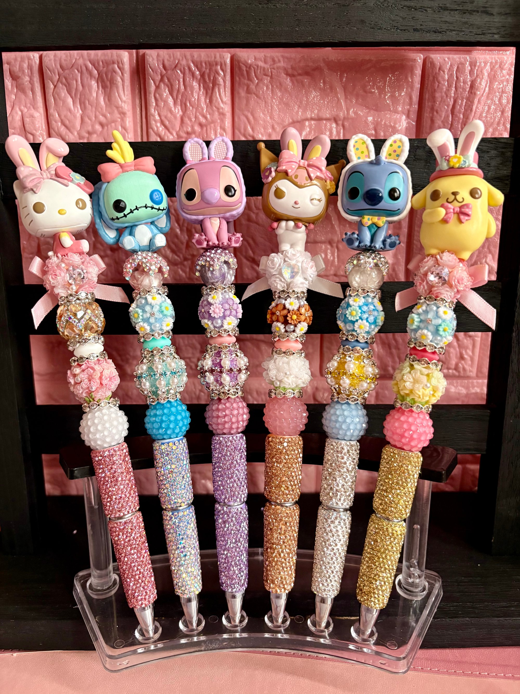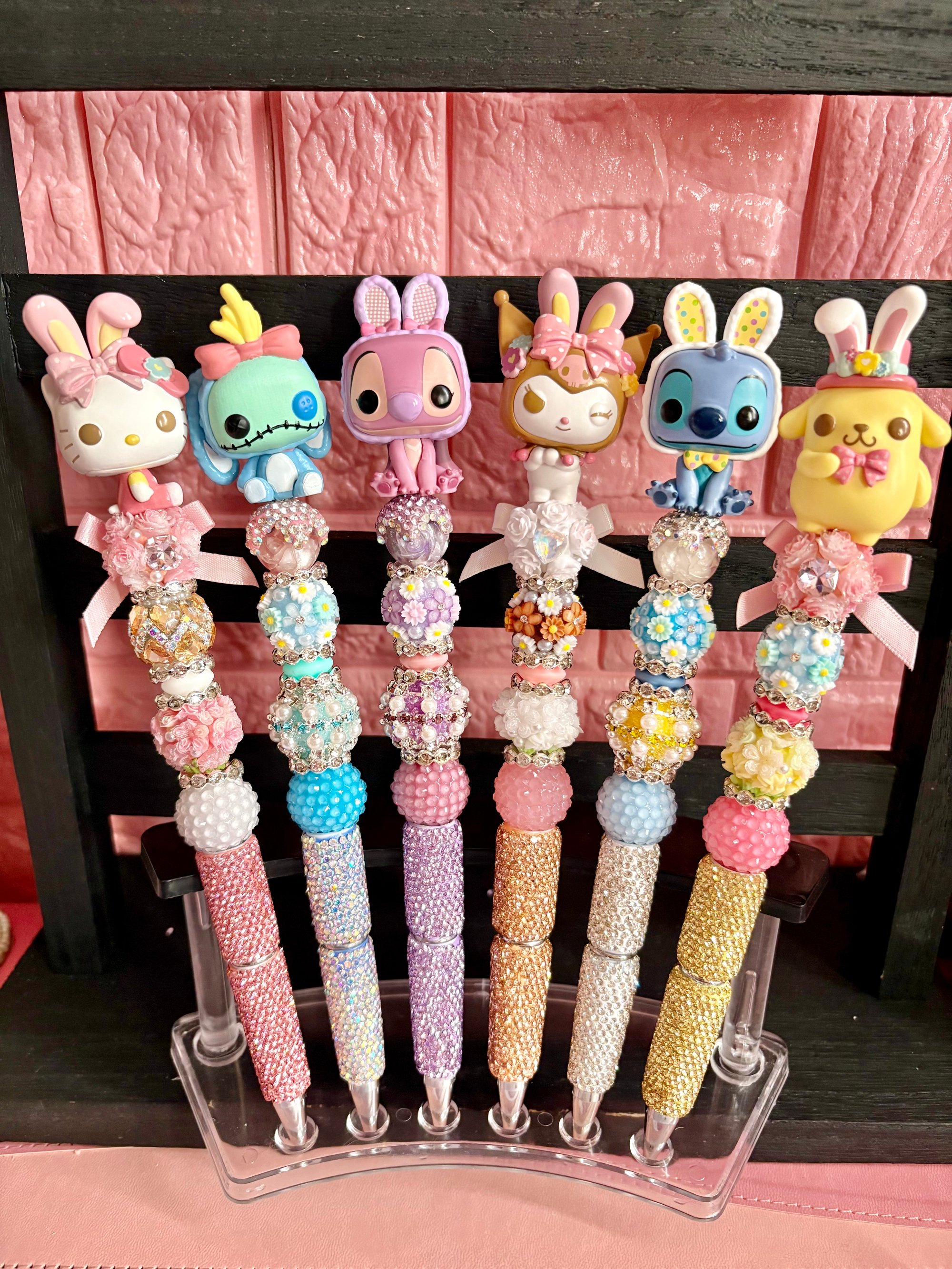Add a touch of sparkle and cuteness to your everyday writing with our handmade Bunny Bling Character Pens! Each pen is carefully crafted with high-quality rhinestones, textured beads, and adorable character toppers dressed in festive bunny designs.