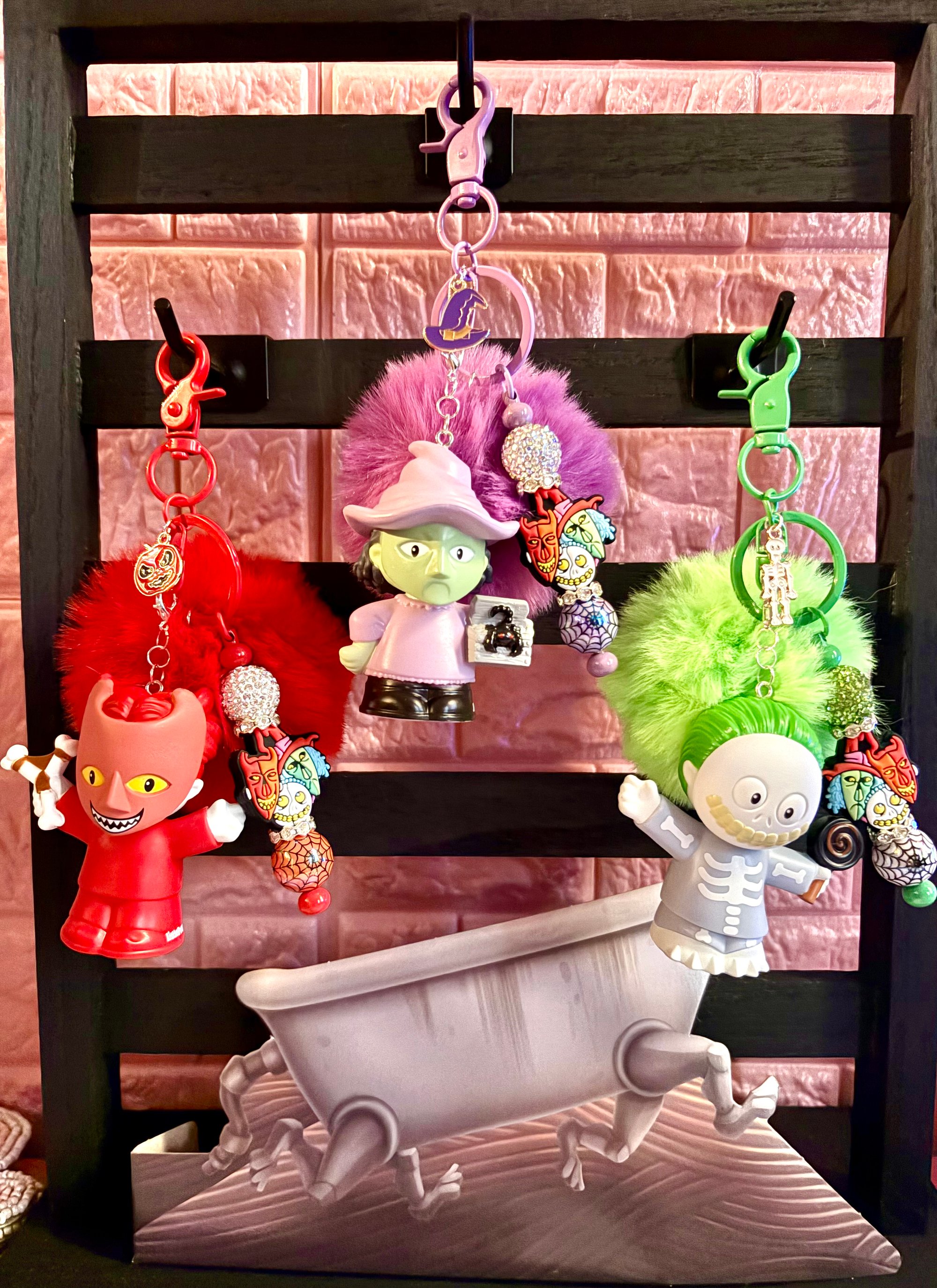 Add a touch of Halloween Town mischief to your collection with these Nightmare Before Christmas Lock, Shock & Barrel keychains! Each piece captures the playful chaos of Oogie Boogie’s mischievous trio — perfect for fans, collectors, or anyone who loves spooky, fun accessories. Great for backpacks, purses, or displaying your Disney love all year round!