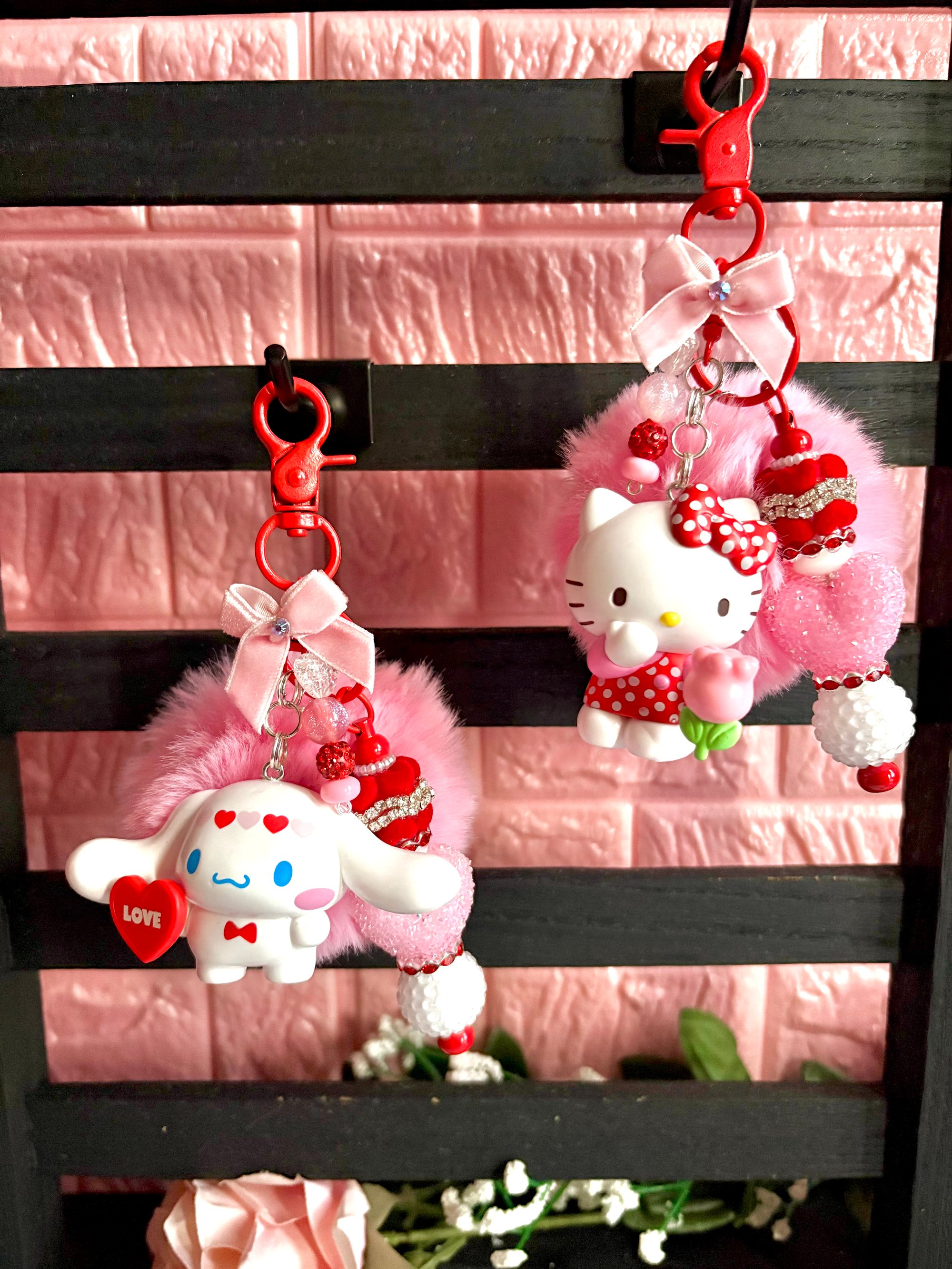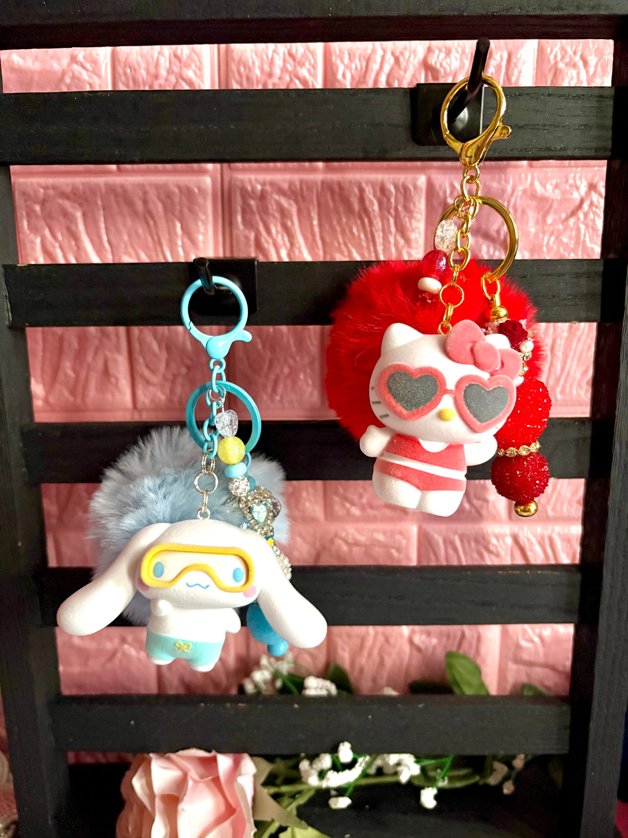 Add a pop of cuteness to your everyday essentials with these handmade Sanrio-inspired character keychains. Each keychain features an adorable character charm paired with fluffy pom-poms, bows, beads, and high-quality hardware for a fun and eye-catching look. Perfect for keys, bags, backpacks, or as a thoughtful gift for any Sanrio lover.