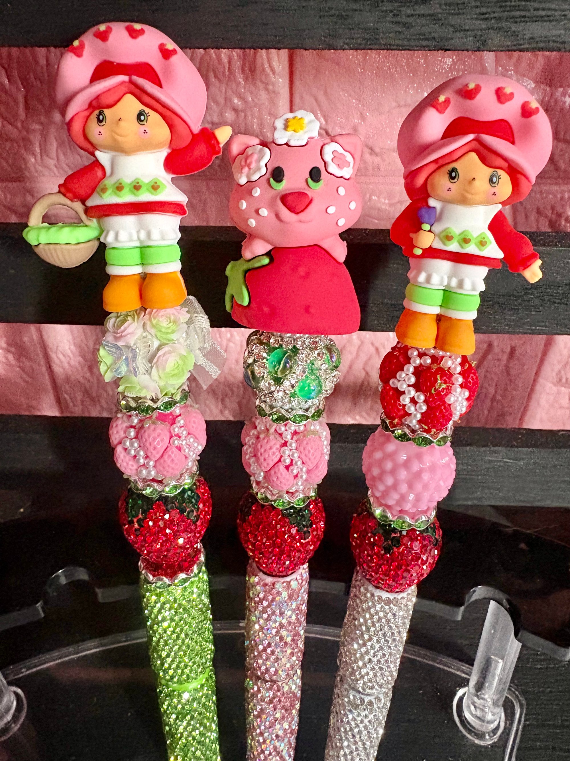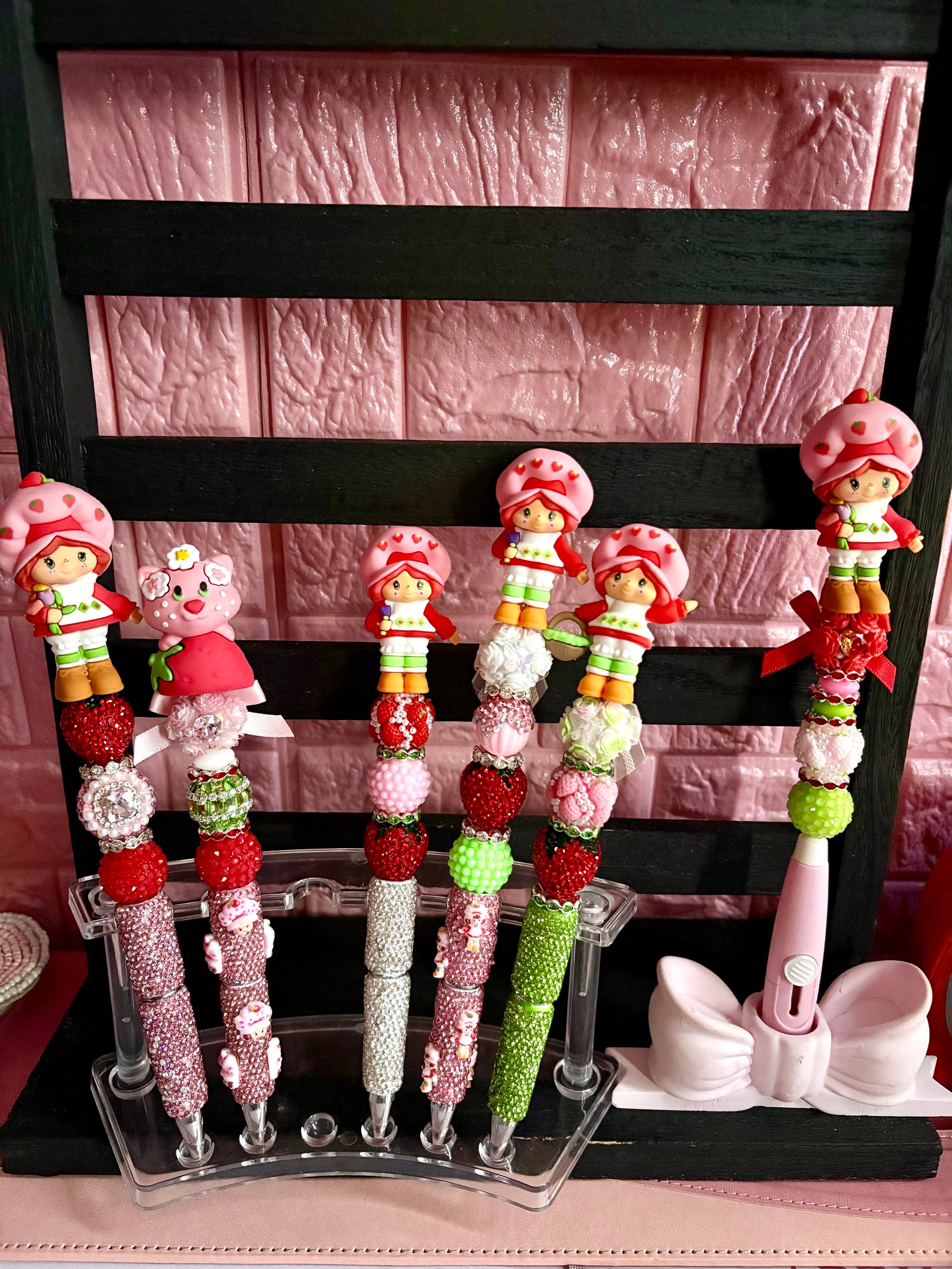 Add a touch of sweetness to your everyday writing with our handmade strawberry-themed pens π Each pen is carefully designed with an adorable strawberry character topper and layered with decorative strawberry beads, pearls, and sparkling rhinestones. No two pens are exactly alike, making each one a unique piece. Perfect for journaling, school, office use, or gifting, these pens combine functionality with charming, eye-catching design.