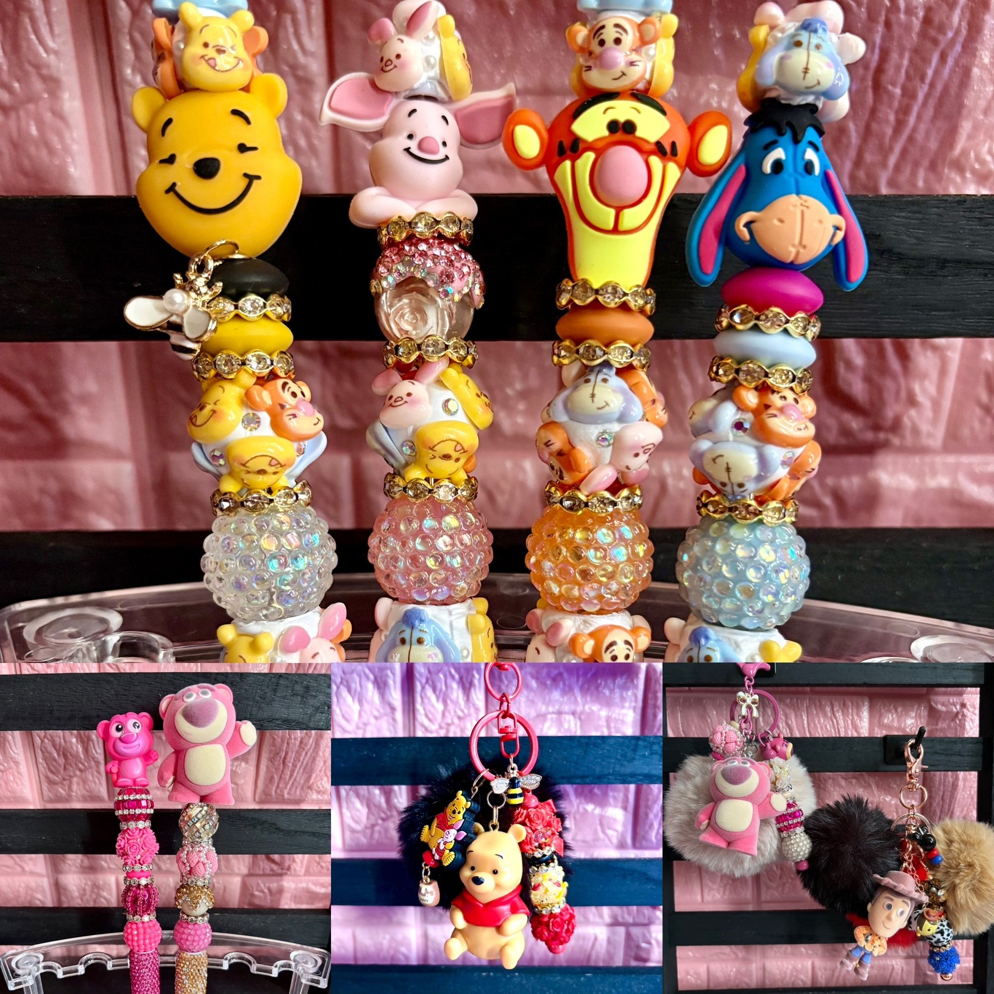 Add a touch of sweetness and nostalgia to your everyday writing with our handmade Winnie the Pooh & Friends beaded pens! Each pen is carefully designed with adorable character toppers featuring Pooh, Piglet, Tigger, and Eeyore, paired with sparkling rhinestone beads and detailed character accents throughout.