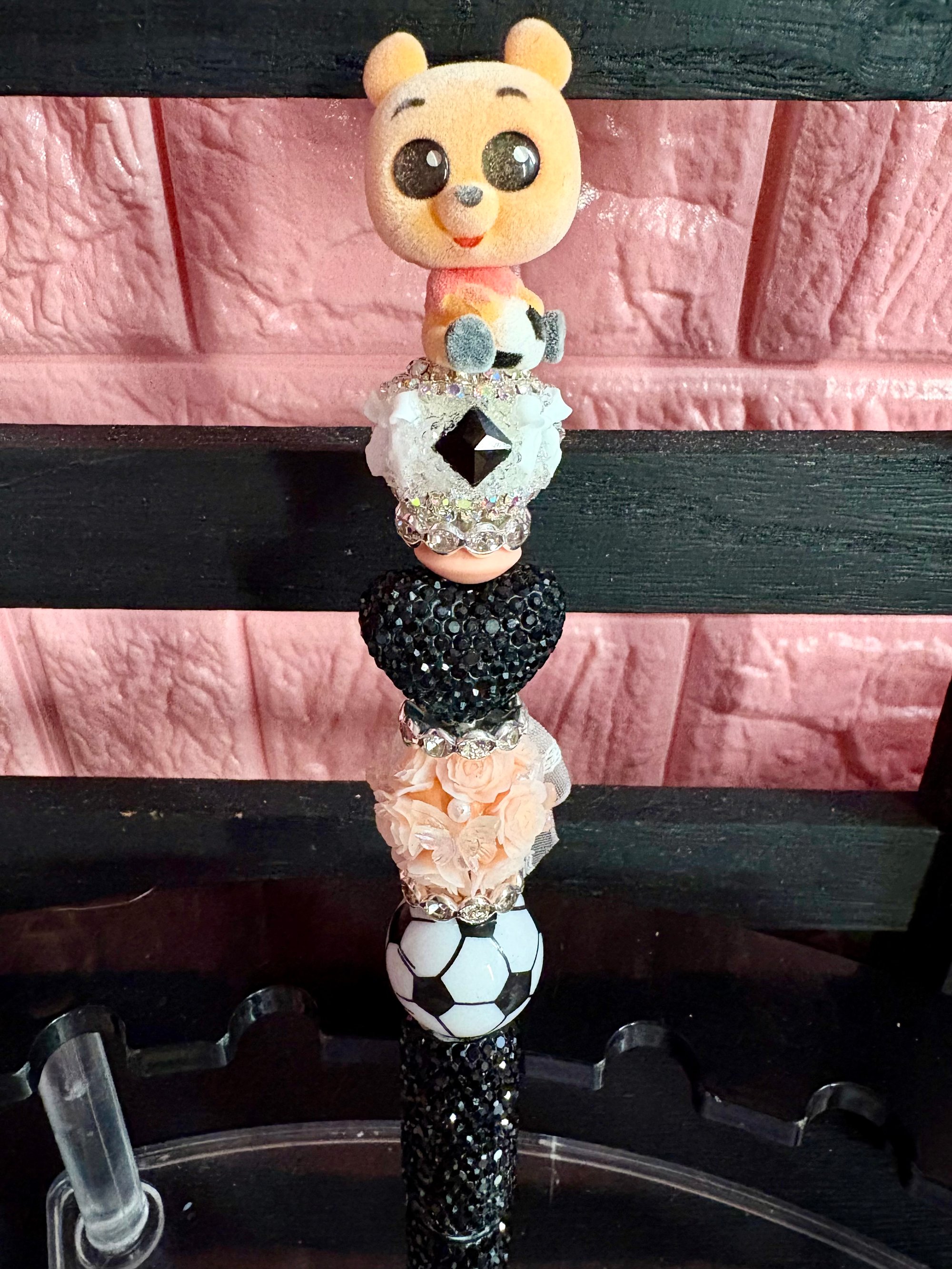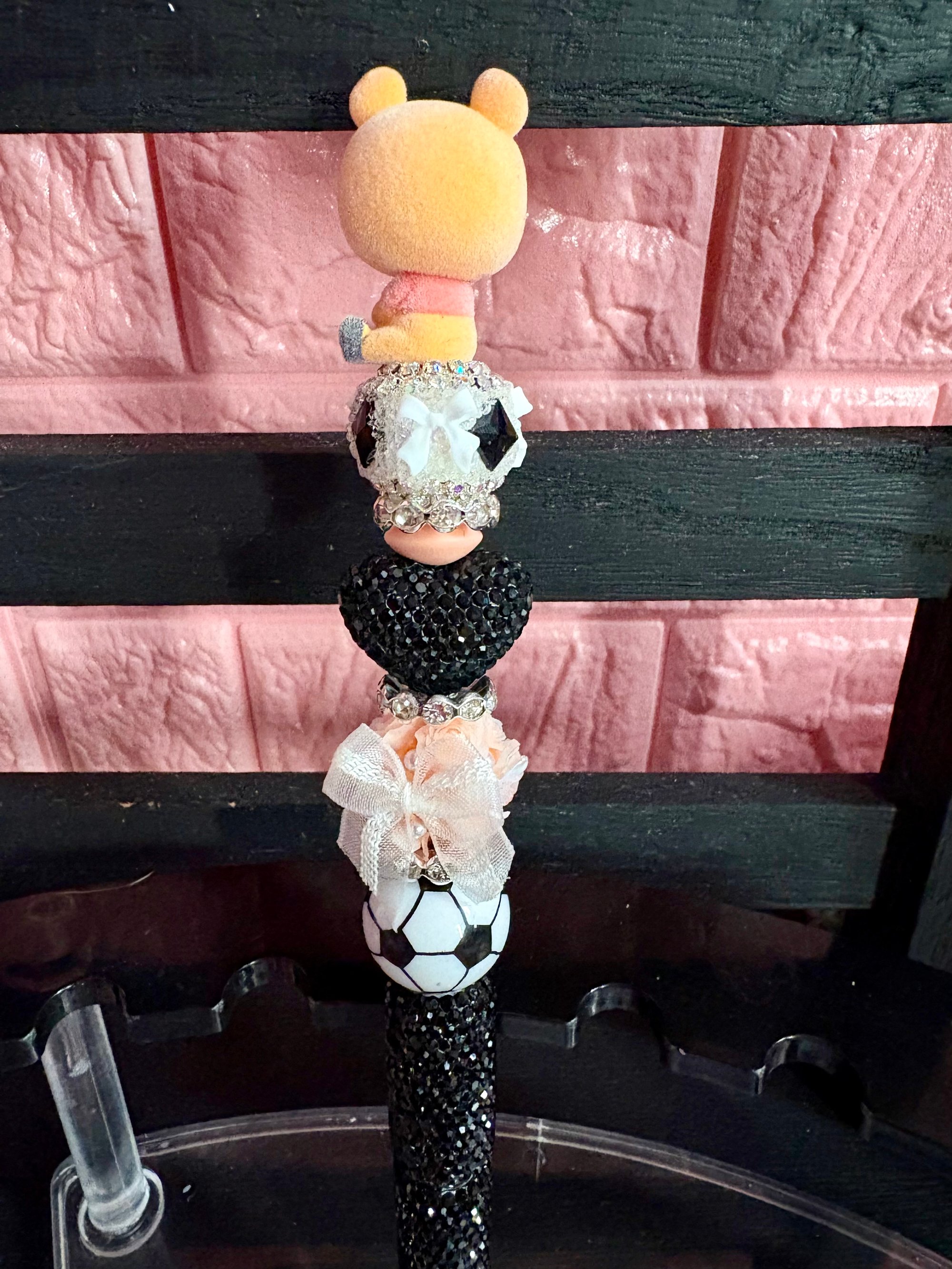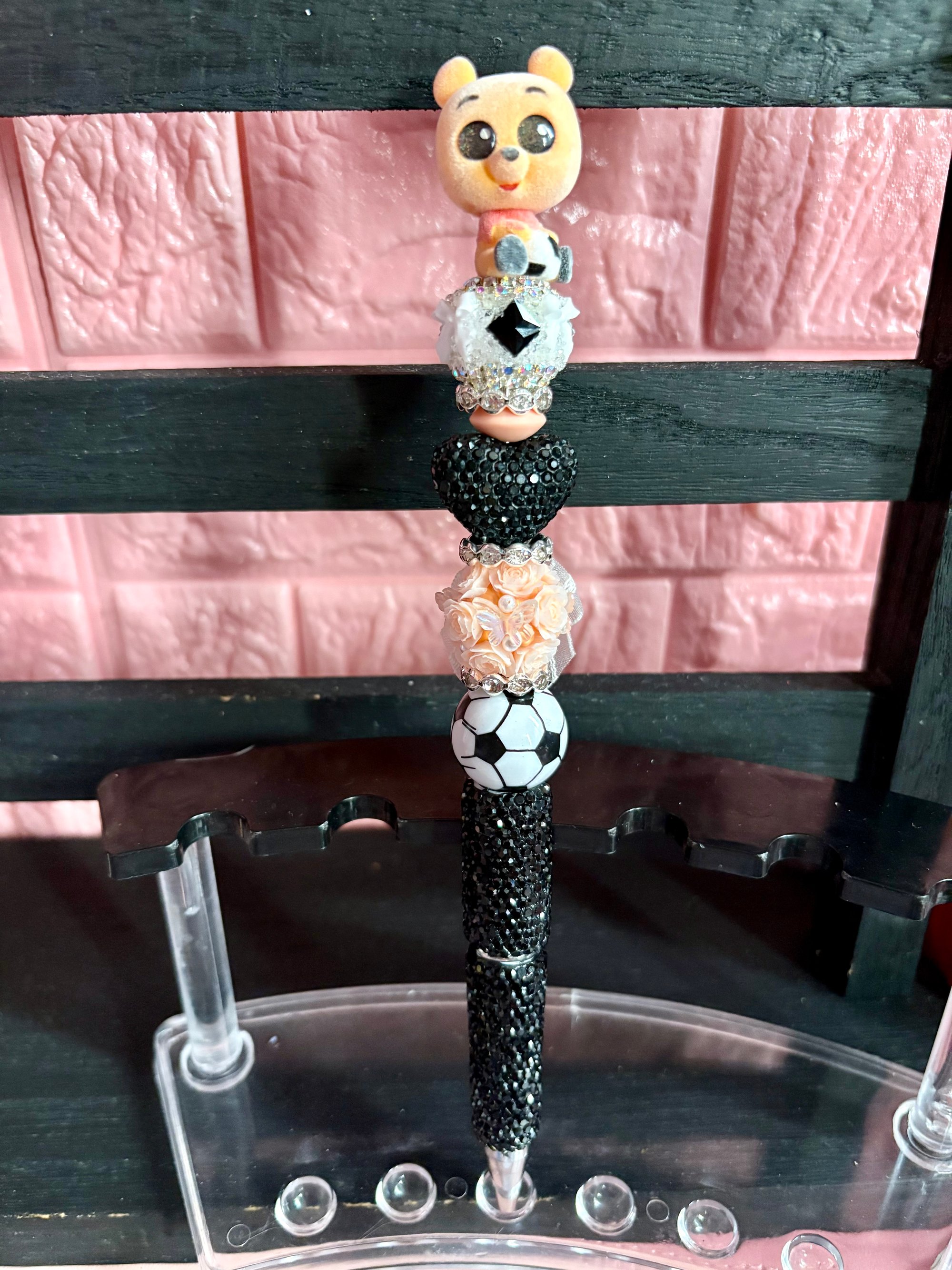 Add a touch of sweetness to your stationery collection with this Limited Edition Disney Doorables Winnie the Pooh Beaded Pen. This adorable handcrafted pen features a charming Winnie the Pooh Doorables figure paired with beautiful decorative beads that create a fun, sparkly, and eye-catching design. Each pen is carefully assembled to bring together playful Disney magic and stylish bling, making it perfect for collectors and Disney lovers alike.